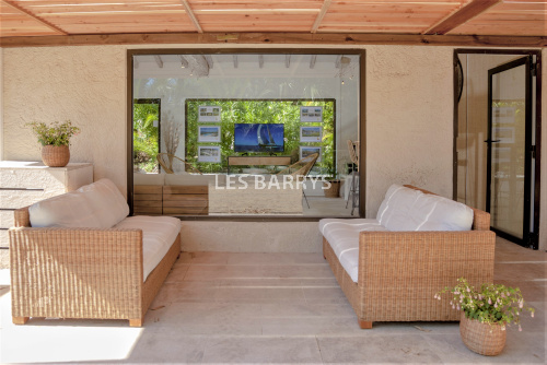 À proximité immédiate du village de Ramatuelle et de la plage de Pampelonne, cette propriété se distingue par son emplacement exceptionnel au cœur d’un vaste domaine arboré. Entourée d’une oliveraie, elle bénéficie d’un environnement préservé, idéal pour celles et ceux en quête de tranquillité et de discrétion. Le domaine se compose de deux bâtisses indépendantes. La maison principale, d’architecture provençale, s’ouvre sur une piscine chauffée dotée d’un système de nage à contre-courant, prolongée par une terrasse spacieuse. Une seconde maison peut accueillir du personnel ou des invités dans des conditions optimales de confort et d’indépendance. D'une capacité d'environ une vingtaine de personnes, la propriété dispose d’infrastructures de qualité : un terrain de tennis, un terrain de jeux (basket, football), une piste pour hélicoptère et deux grands garages fermés. Que vous souhaitiez un havre de paix ou un lieu destiné à accueillir des événements exclusifs, cette propriété répondra à toutes les attentes. Cette villa a été le témoin de nombreuses soirées d’été mémorables et attend de nouveaux propriétaires pour continuer à créer des souvenirs d’exception. Elle offre par ailleurs un potentiel remarquable de personnalisation, permettant à chacun de l’adapter à ses exigences et à son mode de vie.
